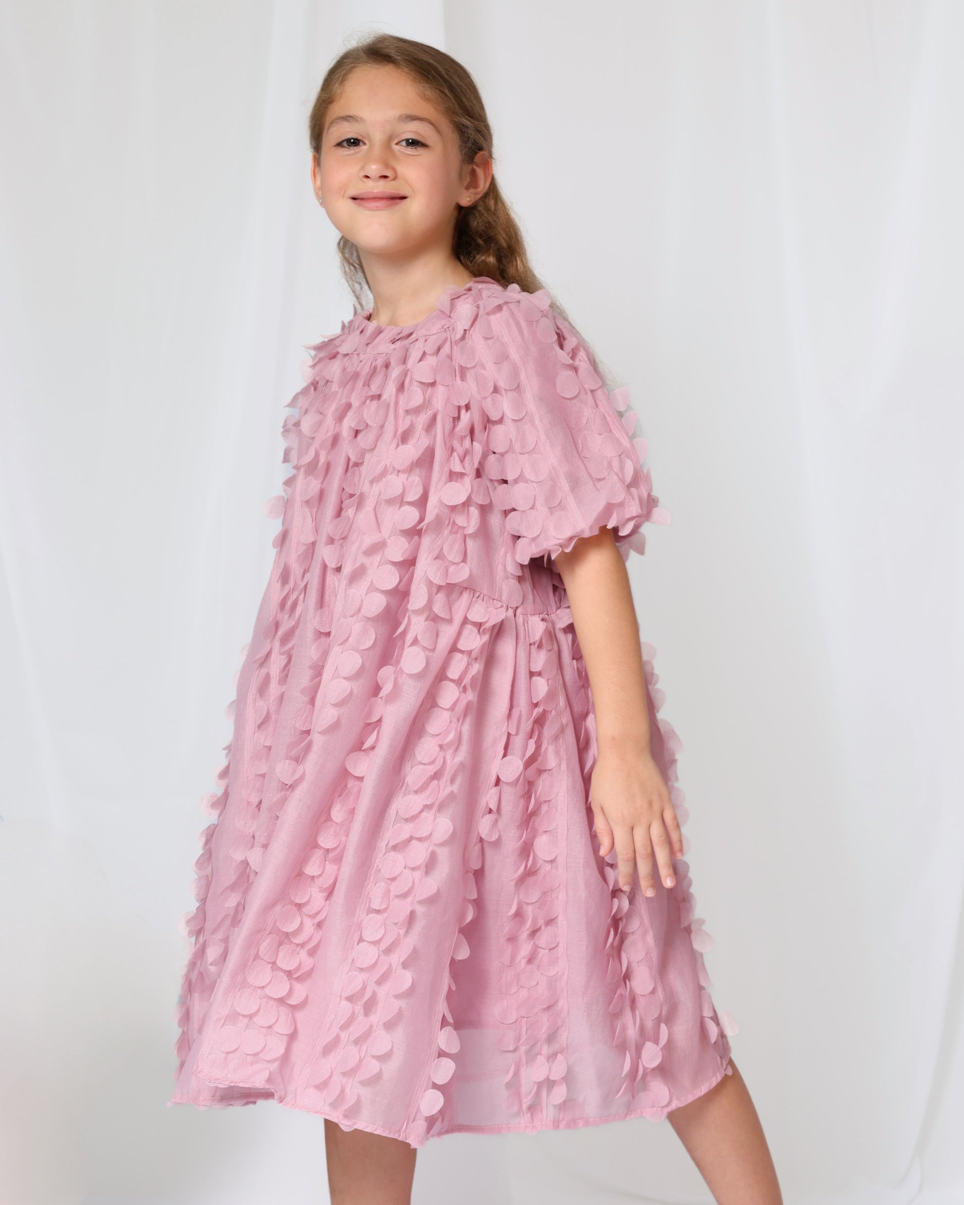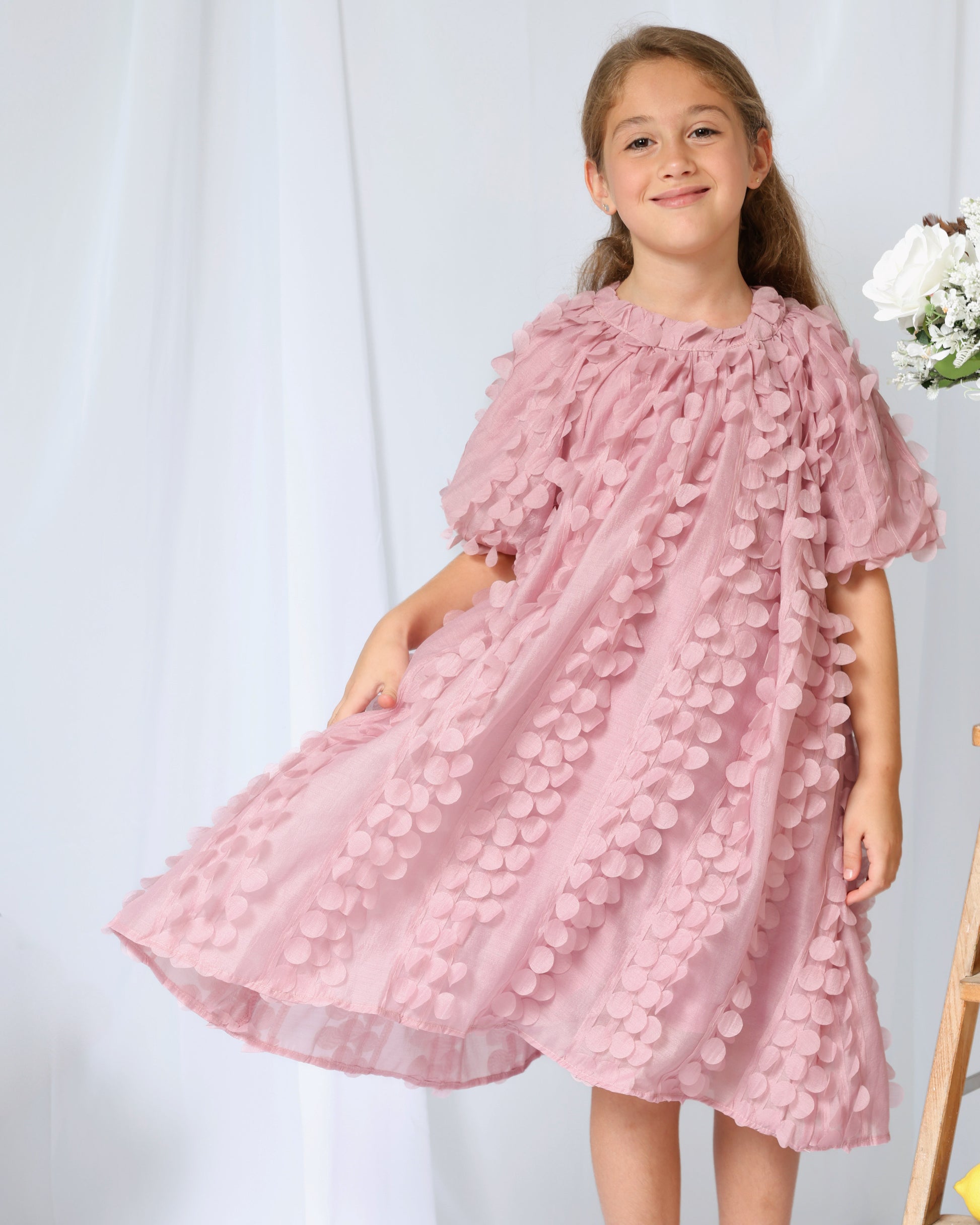 This purple floral dress is perfect for any special occasion. With its beautiful design, it's sure to make your little one stand out. Made with high-quality material, it's both comfortable and stylish. Perfect for kids, this dress will be a lovely addition to their wardrobe.